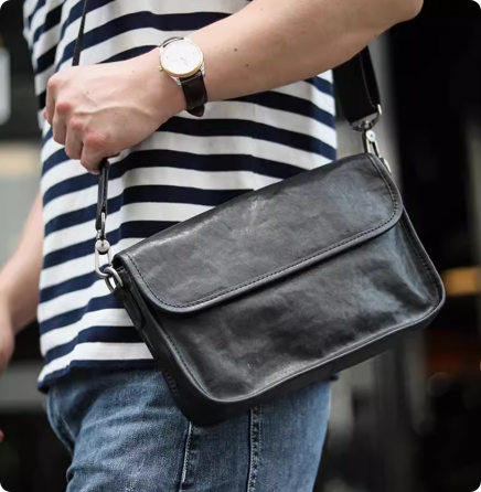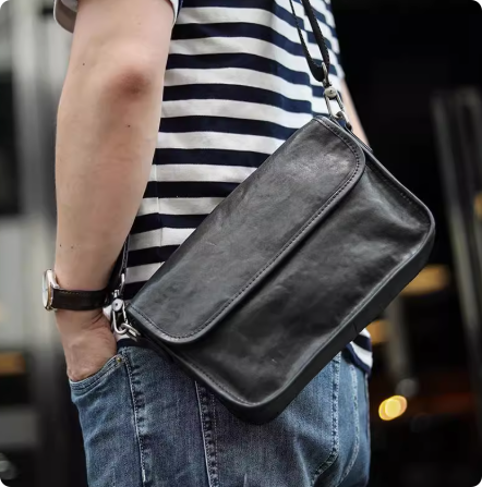 原创真皮男士通勤单肩斜挎包植鞣软牛皮小包简约男包高级感枕头包
