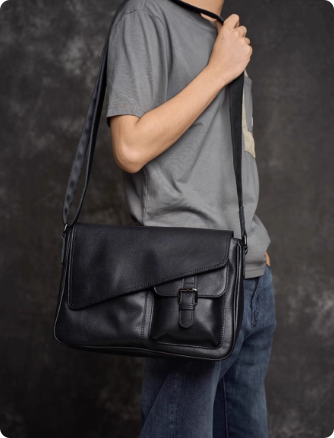 原创真皮男士通勤单肩斜挎包植鞣软牛皮小包简约男包高级感枕头包