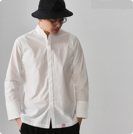 男装潮流休闲长袖修身衬衫白色