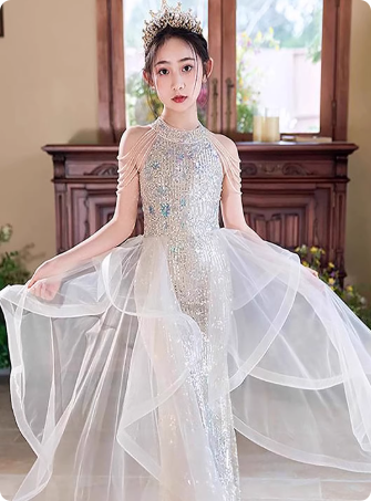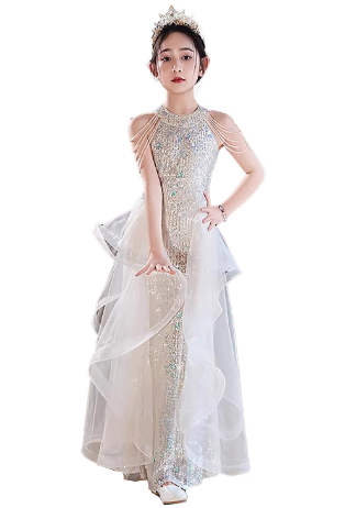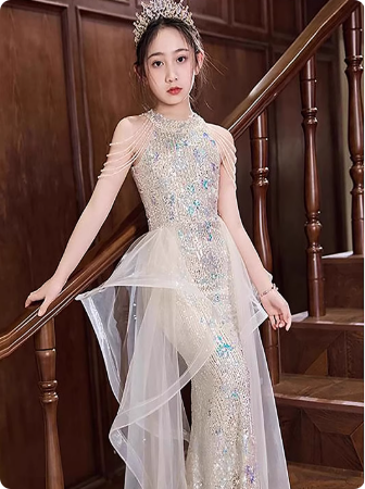 轻奢童装生日公主裙高端女童主持人钢琴演奏演出服