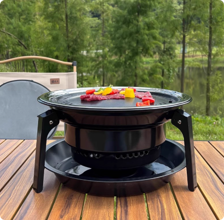 户外围炉煮茶炉子折叠便携露营加热火炉加厚圆形木炭烧烤架
