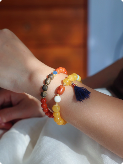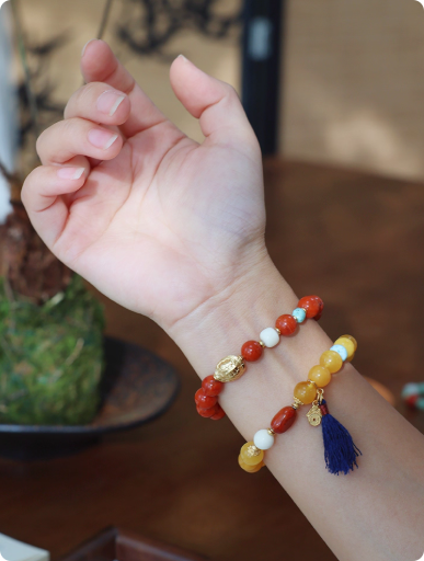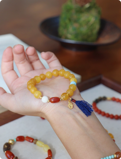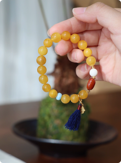 『梅子黄时』天然俄料鸡油黄蜜蜡南红文玩手串开运新年中式手链