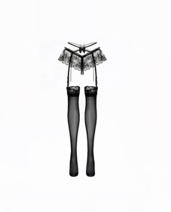 法式性感蕾丝交叉镂空过膝黑丝吊带袜开裆纯欲花边丝袜