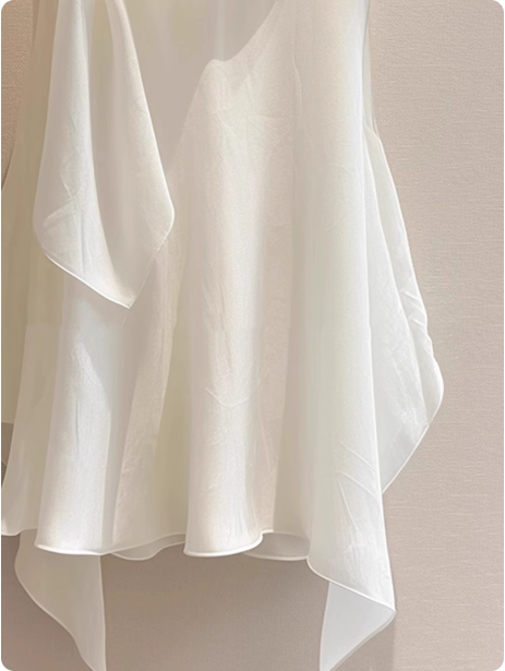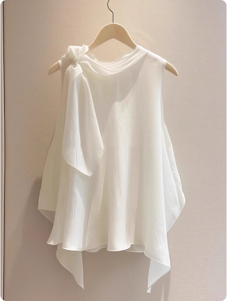 白色蝴蝶结飘带领结雪纺吊带背心女夏季法式不规则设计感无袖衬衫