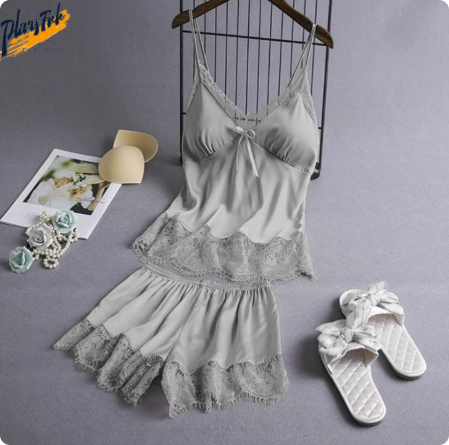 宽松吊带韩版两件套睡衣女夏冰丝绸带胸垫春秋短裤套装家居服薄款
