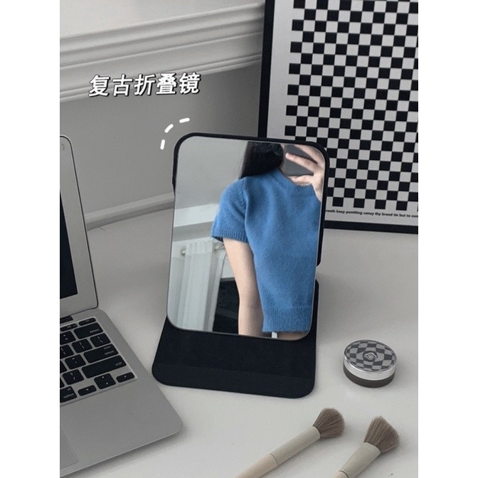 台湾现货1-5 ins风折叠小镜子化妆镜学生宿舍简约梳妆镜台式桌面可立家用便携