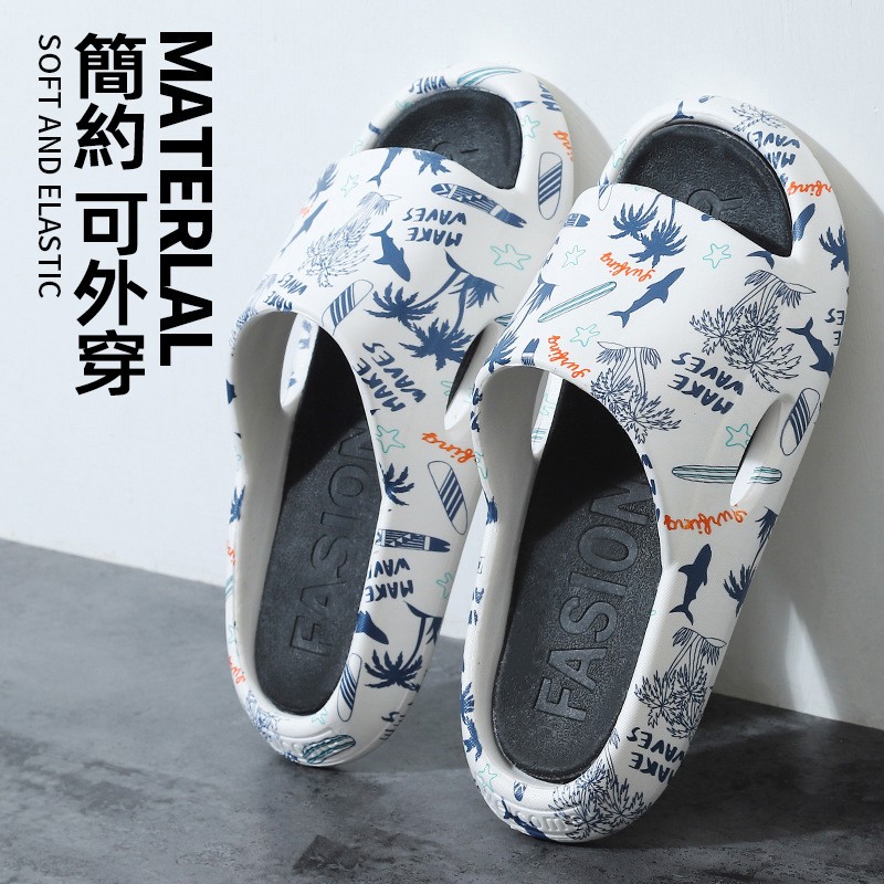 快速发货 拖鞋 暴力熊 鲨鱼 迷彩 纯色 室内外 沙滩 厚底 男女情侣 夏 潮 洗澡 防滑防臭 家居凉拖(超10双选宅配