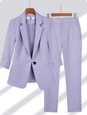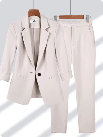 职业套装女2025夏秋新款简约纯色大码西装高级气质修身西服两件套