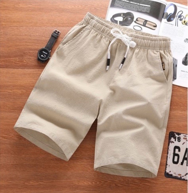 【台湾发货】A2C影片实拍微弹棉麻布料夏季 男生短裤 百搭松紧腰围短裤 休闲短裤 男士短裤 海滩风 实搭五分短裤 短裤