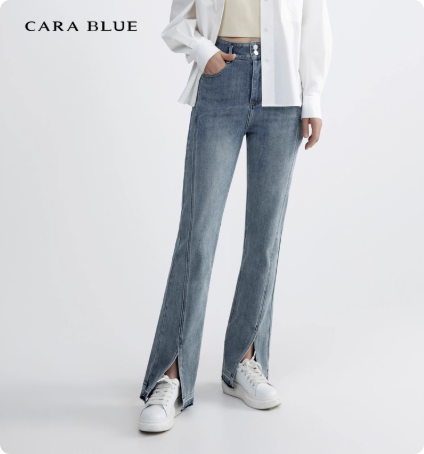 CARABLUE 休闲开叉直筒牛仔裤 KB233MJP0002
