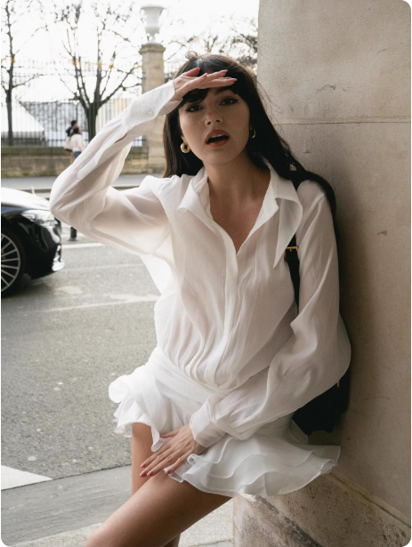 法式荷叶边Datt白色衬衫连衣裙2025高级设计感辣妹裙