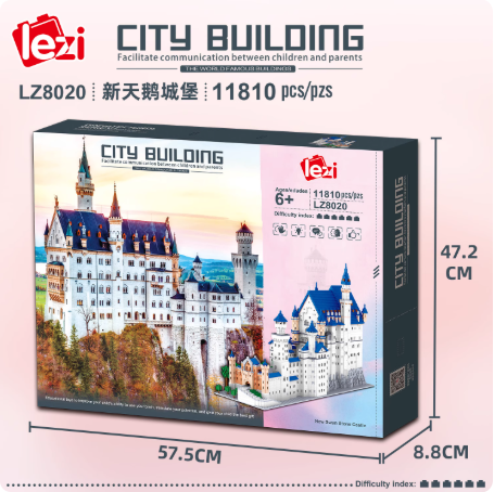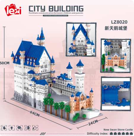 乐子LZ8020天鹅大城堡微大型成人难度拼装立体模型积木玩具