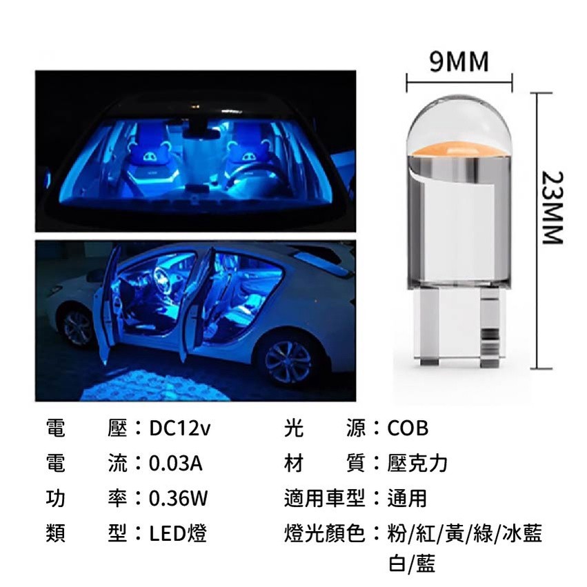 T10 LED COB 灯泡 短板 方向灯 车厢灯 阅读灯 室内灯 车牌灯 行车灯 行车灯 LED T13压克力多色可选